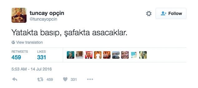 FETÖ'nün manipülasyon alanı olarak seçtiği en önemli yerlerden birisi elbette basın ayağıydı. Ve bu manipülasyon ağını yöneten kişiler de bir şekilde yurtdışına kaçtılar. Yurtdışında terör faaliyetlerini sürdüren kişilerden olan Emre Uslu, Tuncay Opçin ve Mustafa Ünal 15 Temmuz tarihinden hemen önce attıkları tivitlerle darbenin geleceğinin sinyalini de verdiler. Hatta Opçin'in attığı tivit olayın ne denli kanlı olacağının da göstergesiydi.