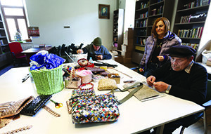 Gönüllülerden bir diğeri de Maria hanım. Çekinerek girdiğimiz atölyesinden güler yüzle ayrılıyoruz. Maria hanım atölyesinde bir nesne nasıl atık malzemeden yapılır, evdeki fazlalık dergi, gazete atılmadan nasıl işlevsel bir nesneye dönüştürülür, onun dersini veriyor.