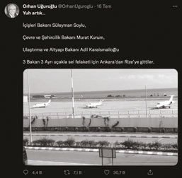 Ancak apaçık yalan olmasına rağmen Gazeteci Orhan Uğuroğlu "3 Bakanın 3 ayrı uçakla sel felaketi için Ankara'dan Rize'ye gittiğini" iddia etti. Üstüne görsel bir kanıt da sunuyordu! Ancak İçişleri Bakanlığı Bakan Müşaviri M. Burak Gültekin tarafından "yalan" olduğu ifade edildi. Fotoğraftaki uçaklardan birisi özel bir uçaktı, bir diğeri Jandarma İnsanlı Keşif Uçağıydı. İçlerinden sadece birisi bakanları Rize'ye götürmek üzere kalkmıştı. Üstelik uçakta sadece bakanlar da yoktu. Milletvekilleri, bakan yardımcıları ve AFAD ekibi de uçakta yerini almıştı.