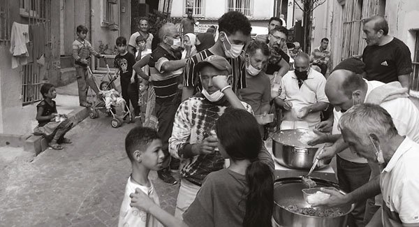 Ayrıca Mehmet beyin Afrikalılara Türkçe ders vermek ve onların sağlık sorunlarına yardımcı olabilmek adına çalışmalar yaptığını öğreniyorum. Zamanla bir de dayanışma topluluğunun olduğu yere mutfak kurup, her hafta Tarlabaşı'ndaki çocukları pazar günleri kahvaltıda buluşturuyorlar. Madde bağımlısı gençler arasından, bu tehlikeden kurtulmak isteyenleri rehabilitasyon merkezlerine yönlendiriyorlar. Sokakta kalan insanlara sıcak yemek yapıp, ayrıca yanlarına kadar götürüyorlar. Mehmet bey şöyle devam ediyor sözlerine: "Sınıra gönderilen göçmenler de bunlara eklendi. Evsiz bir grup göçmeni barınma yeri açıp yerleştirdik. Hijyen ve gıda ihtiyaçlarına pandemi yasakları bitene kadar destek olduk."