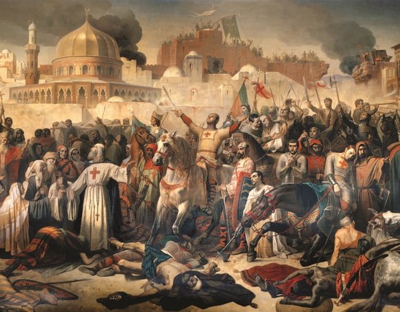 1095'te Papa II. Urbanus'un Kudüs'ü kâfirlerin elinden almak hedefiyle ve günahlarının silinmesi vaadiyle yaptığı çağrıya binlerce Hristiyan kulak vererek Haçlı ordusuna katıdı. Haçlılar Avrupa'dan Kudüs'e doğru yola çıkarken nefret, öfke, intikam duygularını yanlarına almış ve Kilise'nin vaadi doğrultusunda Müslümanların ve Yahudilerin kanını ne kadar çok dökerlerse cennetteki yerlerini sağlama alacaklarına inanarak fanatikleştiler. Bu fanatikler Fâtımîlerin yönetimindeki Kudüs'e vardığında tarihin en kanlı din savaşlarından biri yaşandı. 15 Temmuz 1099'da Haçlı ordusu, kuşattığı Kudüs'ün surlarından içeriye girmeyi başardığında, öfke ve nefretten gözleri dönmüş Haçlılar, o gün ve ertesi günün akşamına kadar Kudüs'te tüm Müslümanları, tüm Yahudileri ve Katolik mezhebinden olmayan Hristiyanları (Ermeniler hariç) yani on binlerce insanı acımasızca katlettiler. Fanatik Haçlılar İsa Mesih'in tanrılığını reddeden Müslümanları özellikle Mescid-i Aksâ'da ve Kudüs'ün her sokağında kılıçtan geçiriyor, uzuvlarını kesiyor, Yahudileri Ağlama Duvarı'nda katlediyor, sinagogda ve meydanlarda diri diri yaktılar.