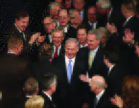Salona girişinden itibaren dakikalarca ayakta alkışlanan Netanyahu'nun konuşması 50'den fazla kez çılgınca alkışlarla bölündü. Bir saate yakın süren konuşma sırasında Kongre'nin "saygın" olması beklenen üyeleri her 30-40 saniyede bir, kurulmuş robotlar gibi konuşmacının ne söylediğine bile bakmadan ve her seferinde ayağa kalkarak avuçlarını kızartırcasına alkışladılar. O kadar ileri gittiler ki konuşmasının bir yerinde soykırımcı Netanyahu bile "Yeter alkışlamayın, dinleyin" diye öfkeli bir tonda uyarmak zorunda hissetti.